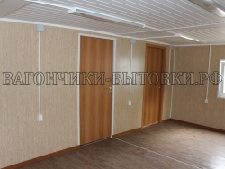 отделка внутренняя: стены-панели МДФ, потолок–вагонка ПВХ;